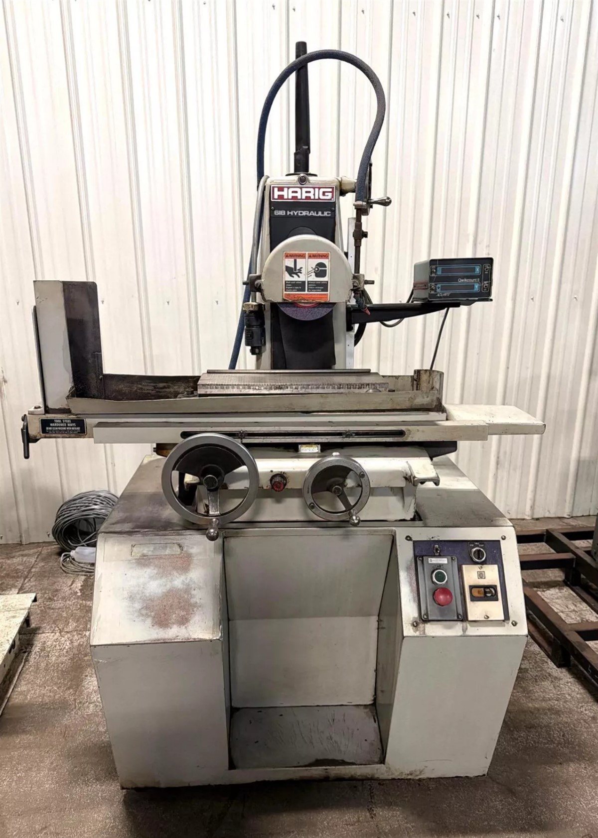 Machinery including band saws, machining centers, and vertical mills. Tooling including calipers, gauges, tool holders, and collets. Welding equipment from Miller and Lincoln.